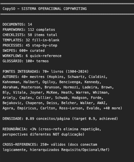 Hopkins, Schwartz, Cialdini, Kahneman, Halbert, Ogilvy, Bencivenga, Kennedy, Abraham, Masterson, Brunson, Hormozi, Ladeira, Brown, Bly, Vitale, Joyner, McKee, Heath, Warren, Whitman, Caples, Collier, Schwab, Hodgson, Forde, Bejakovic, AWAI, Agora, Empiricus e mais…