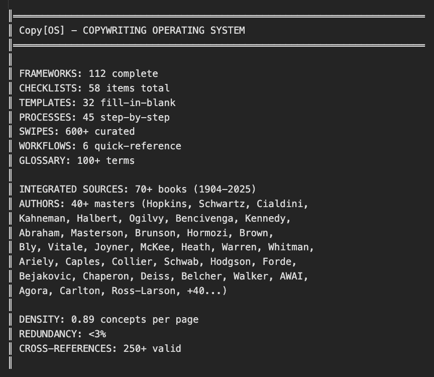 It is a complete operating system where over a century of direct response wisdom is organized, connected, and made instantly applicable.